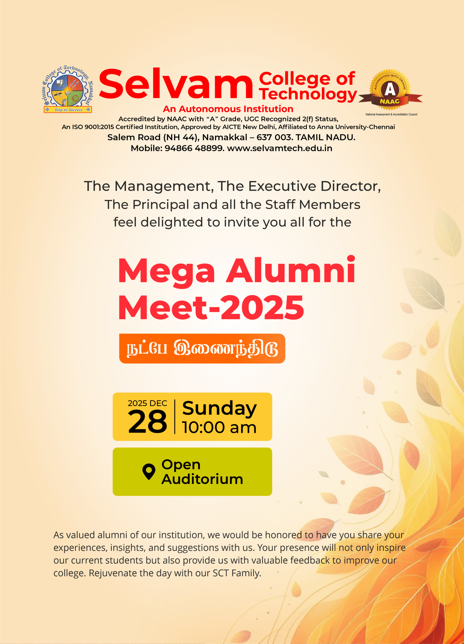 The Department of Electronics and Communication Engineering – Seltronix Association, Selvam College of Technology, Namakkal organized a One Week Value Added Course on “ Programmable Logic Controllers (PLC) – Advance” to our ECE students from 11.11.2025 to 15.11.2025. Dr.S.Babu, Chairman …