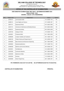 TIMETABLE NOVDEC 2025 EXAMINATIONS Posted by Website Admin SCT Date 23/10/2025 Share: Website Admin SCT You may also like Mother Teresa Educational Excellence Award by International Institute of Education and Management. 15/11/2014 National Conference on Emerging Trends in Electrical, Electronics, Biomedical Engineering and Sustainable Sciences – NCEEEBS 2026 14/03/2026 MoU Signing Ceremony with SARA Controls and Automation 14/03/2026 International Women’s Day Celebration 07/03/2026